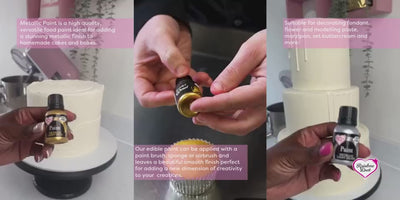 Malingen kan påføres direkte fra flasken med pensel eller svamp på faste overflater som sukkerpasta, tørket royal icing, makroner og sjokolade.